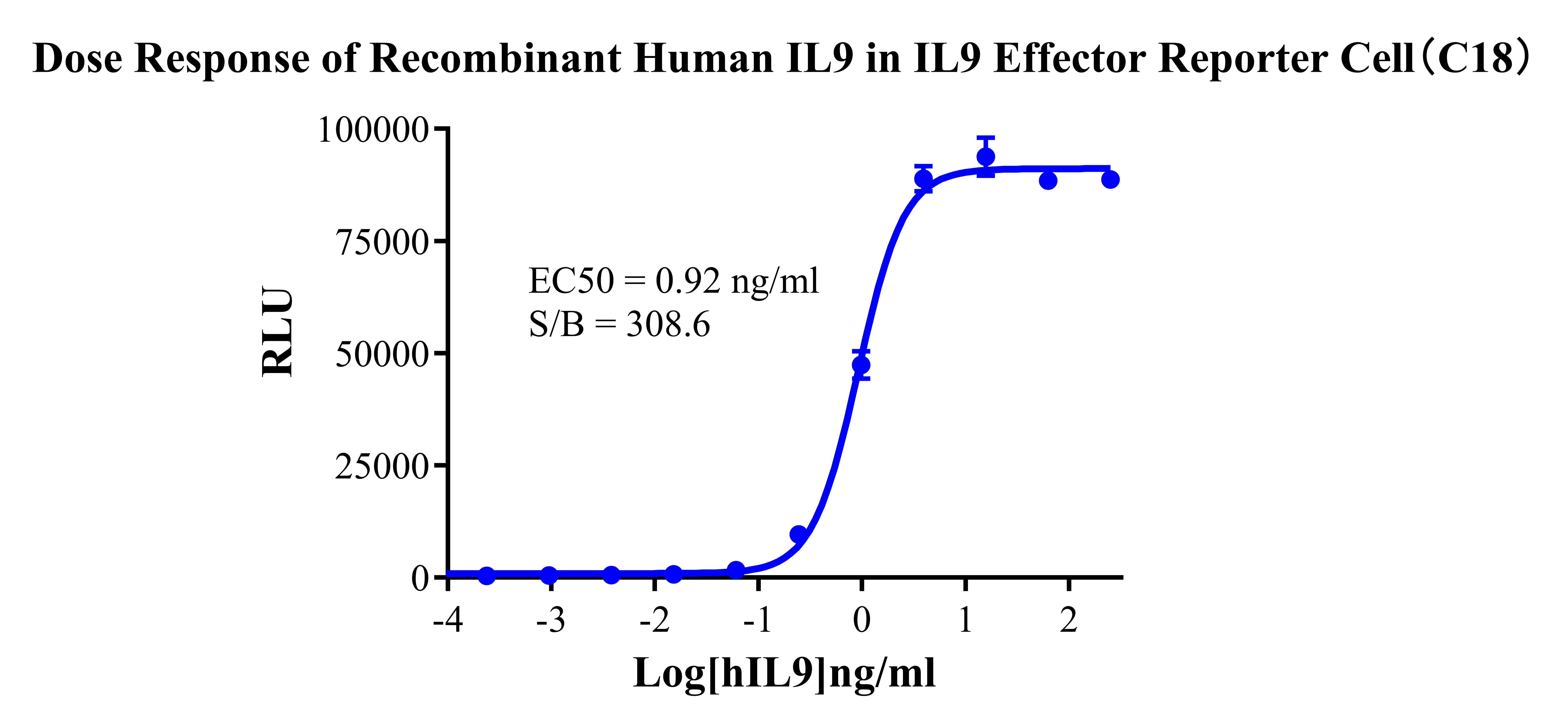 Figure 3. Dose Response of Recombinant Human IL9 in IL9 Effector Reporter Cells (C18). |