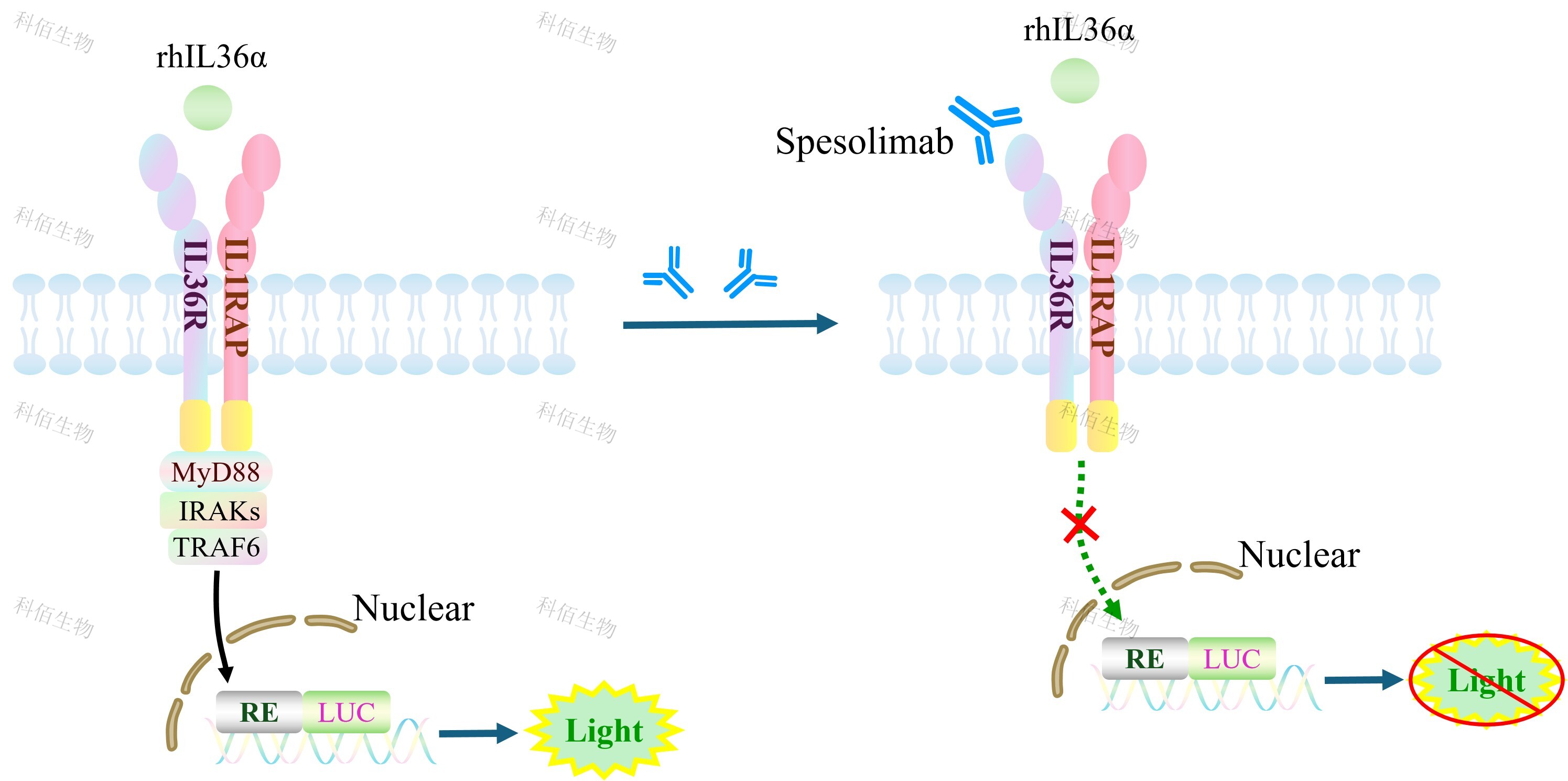![]() Figure 1. IL36 Effector Reporter Cell(Suspension) 细胞模型原理图 |