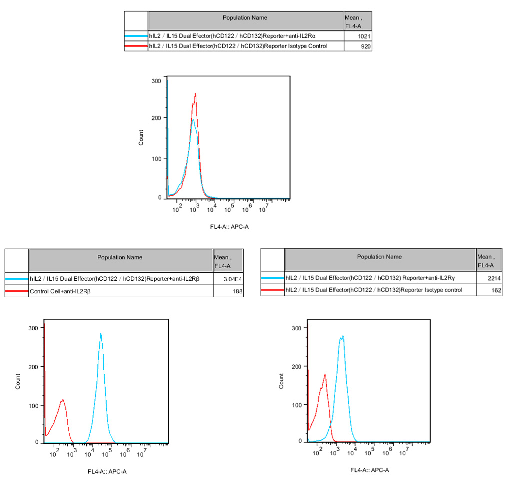 Figure 2. Recombinant hIL2/IL15 Dual Effector(hCD122/hCD132) Reporter Cell constitutively expressing CD122 &CD132. |