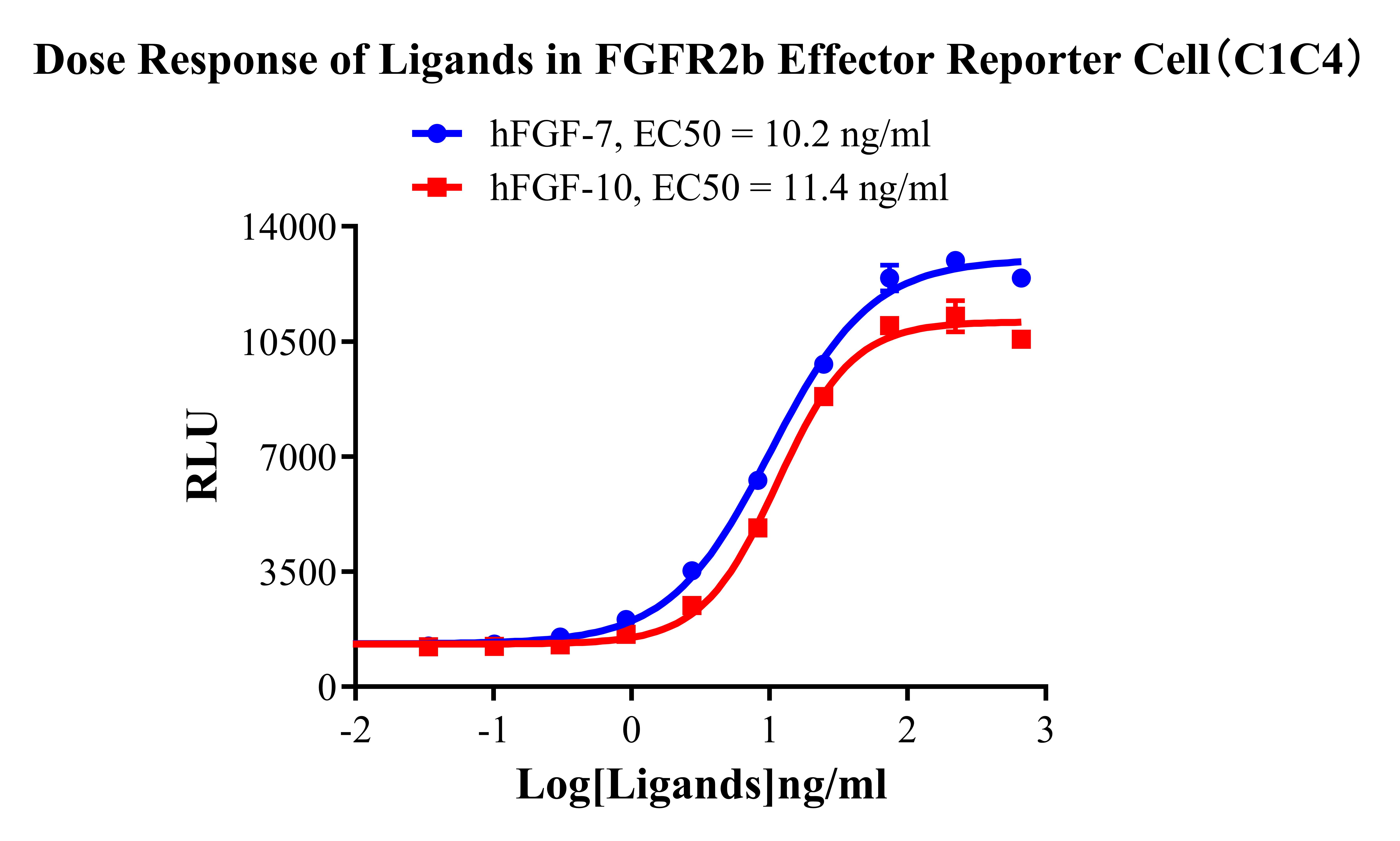 Figure 2. Dose Response of Ligands in FGFR2b Effector Reporter Cell (C1C4). |