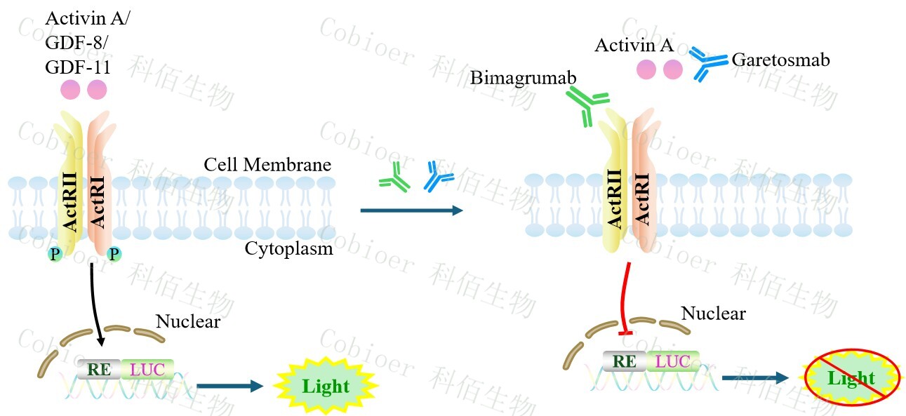 Activin A Effector Reporter Cell 报告基因药靶模型很好的模拟了体内 Activin A 的信号转导过程,原理见下图所示。![]() Figure 1. Activin A Effector Reporter Cell 细胞模型原理图 |