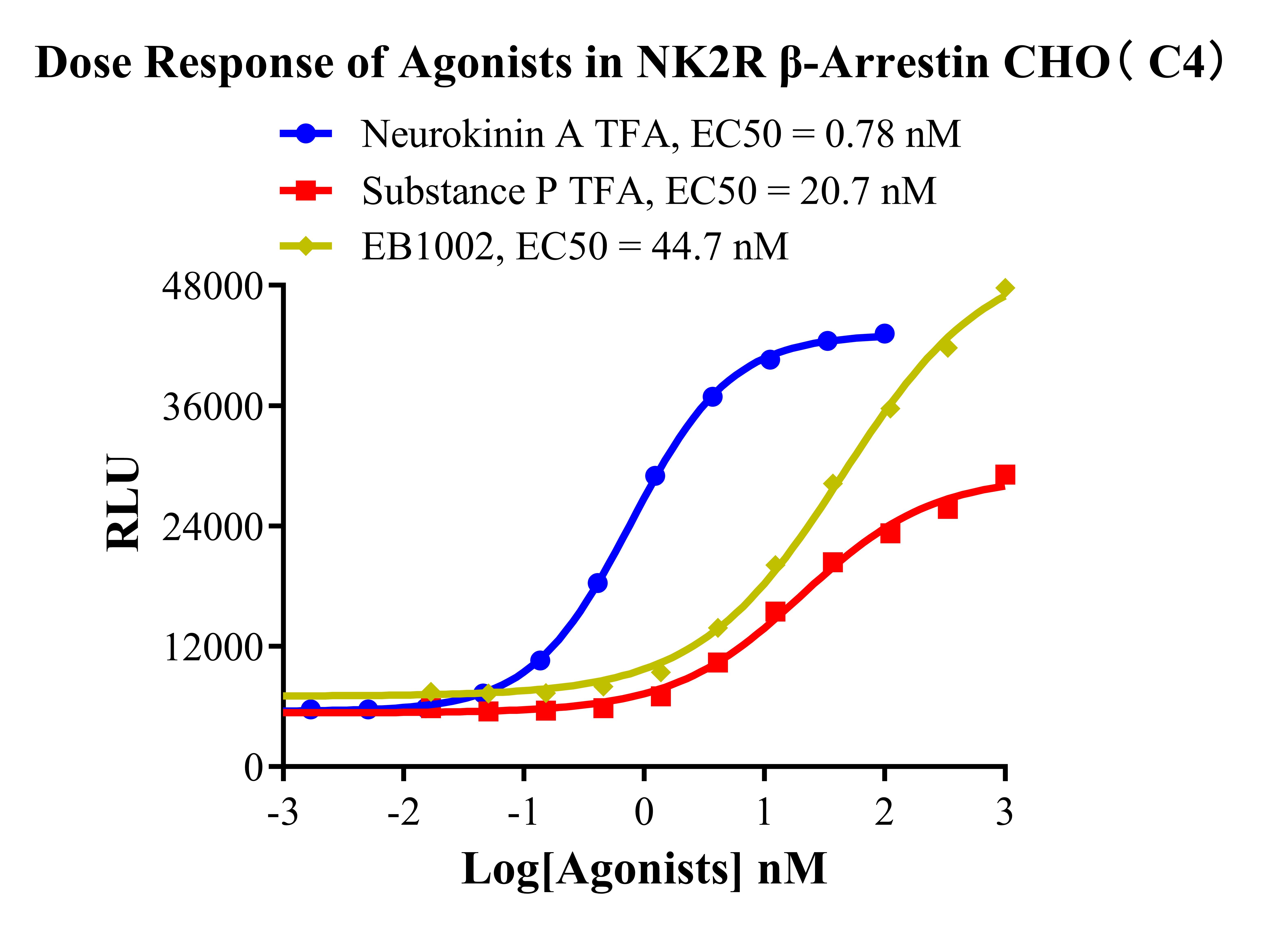 速激肽(Tachykinins )是分布在哺乳动物中枢和周围神经系统中的一类神经肽。速激 肽物质 P(SP)、神经激肽 A(NKA)和神经激肽 B(NKB)共享一个保守的 C 端基序, 对速激肽受体(NK1R、NK2R 和 NK3R)的激活至关重要。NKA 优先激活与 Gα偶联的 NK2R,而 SP 和 NKB 分别优先结合 NK1R 和 NK3R。三种速激肽都能够在所有速激肽受 体类型中表现为完全激动剂。 NK2R 是一种 GPCR,普遍存在于中枢和周围神经系统,然而,有研究发现,NK2R 与 血红蛋白 A1c(HbA1c)水平显著相关。HbA1c 是评估长期血糖控制的重要指标,表明 NK2R 可能在糖代谢调控中发挥关键作用。 |