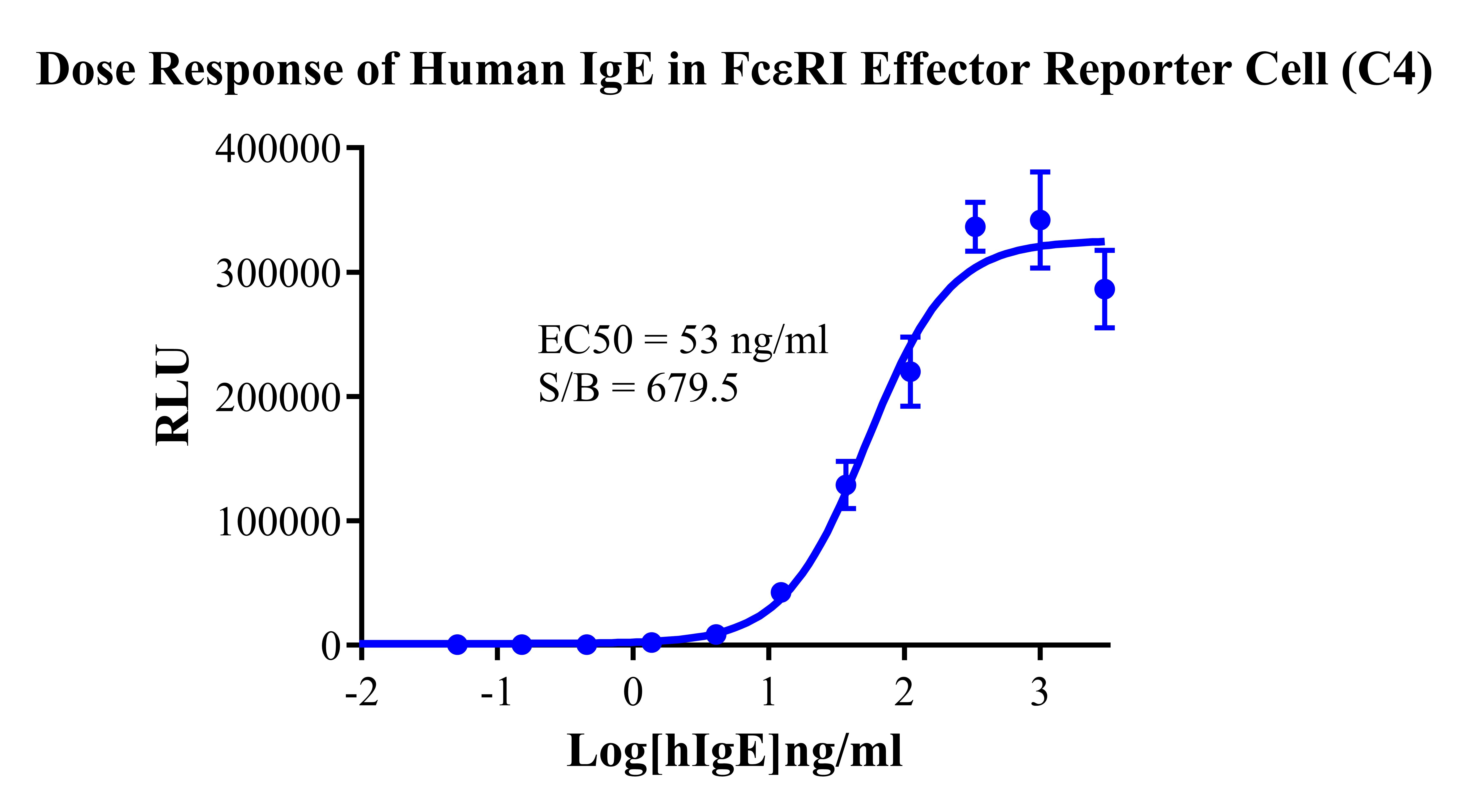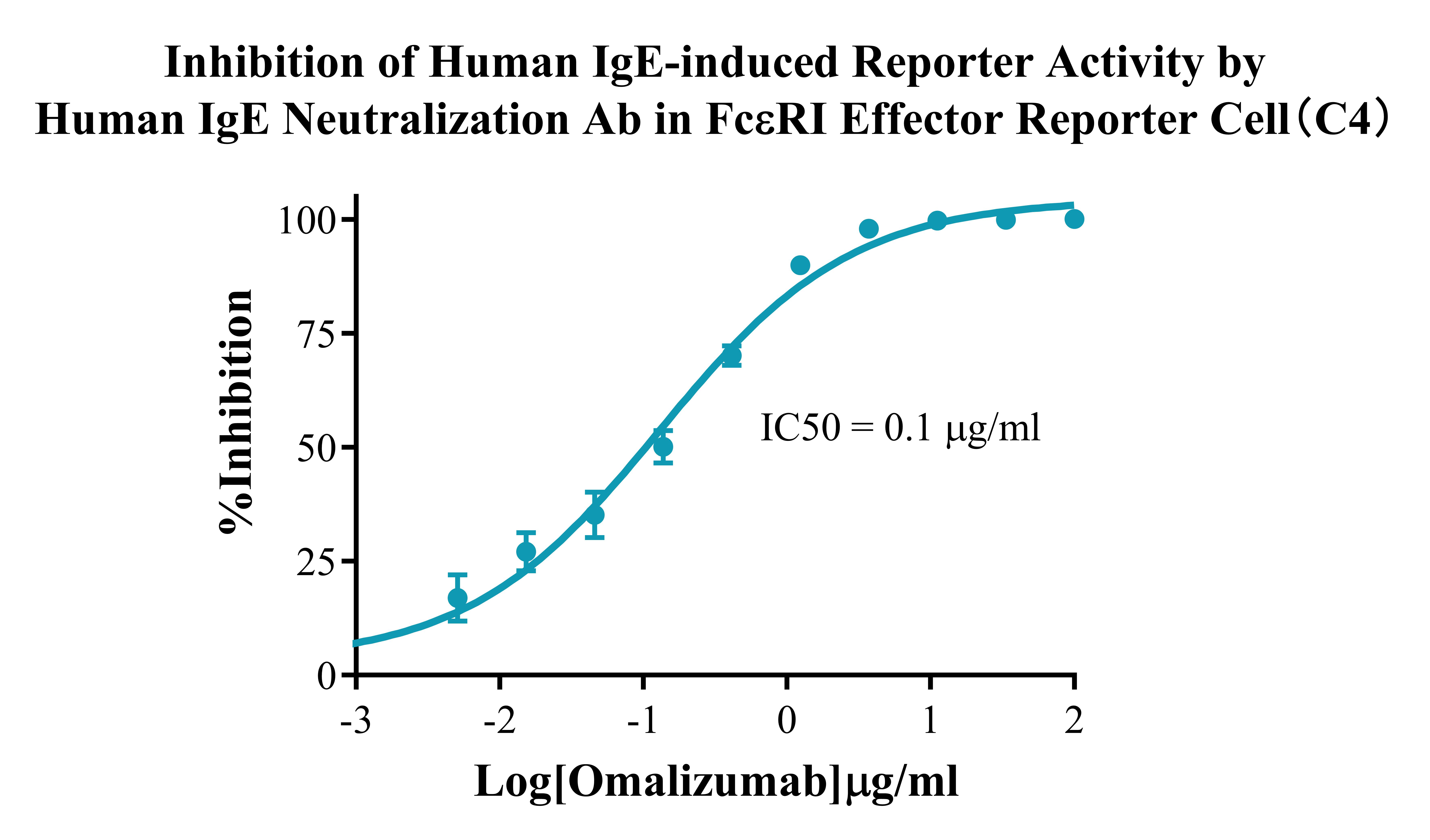 IV. Representative Data![]() Figure 2. Recombinant FcεRI Effector Reporter Cell stably expressing FcεRIA. ![]() Figure 3. Dose Response of Human IgE in FcεRI Effector Reporter Cell(C4). ![]() Figure 4. Inhibition of Human IgE-induced Reporter Activity by Human IgE Neutralization Ab in FcεRI Effector Reporter Cell(C4). |