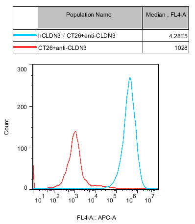 IV. Representative Data![]() Figure 1. Recombinant hCLDN3/CT26 stably expressing hCLDN3. |