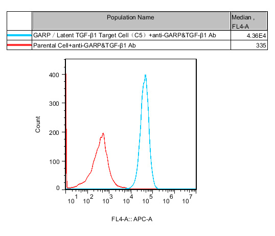 ![]() Figure 2. Recombinant GARP/Latent TGF-β1 Target Cell stably expressing GARP&Latent TGF-β1. |