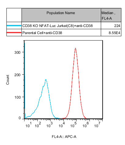 ![]() Figure 2. Recombinant CD38 KO NFAT-Luc Jurkat Cell stably expressing CD38.  |