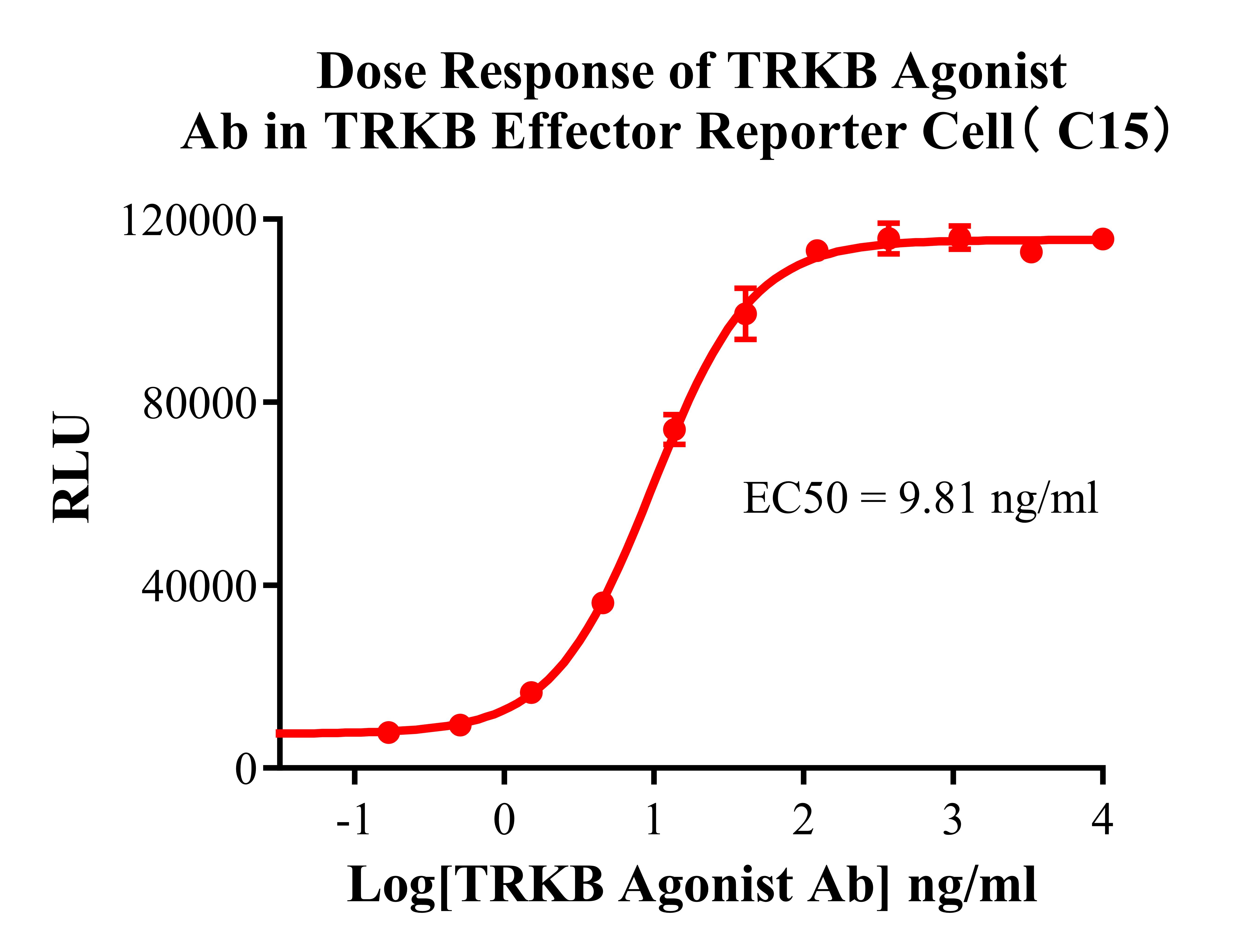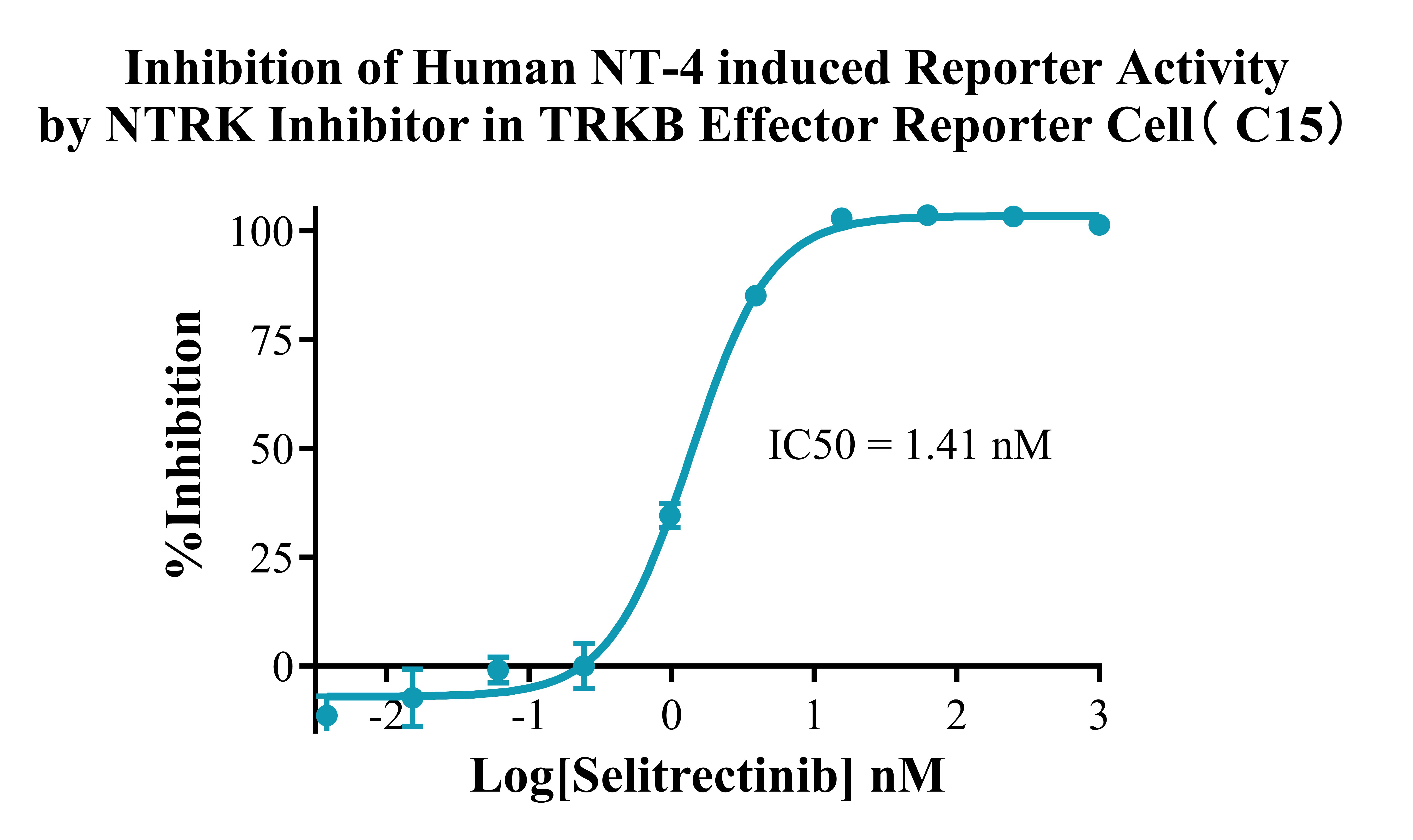 ![]() Figure 2. Recombinant TRKB Effector Reporter Cell stably expressing TRKB. ![]() Figure 3. Dose Response of Recombinant Human NT-4 in TRKB Effector Reporter Cell(C15). ![]() Figure 4. Dose Response of TRKB Agonist Ab in TRKB Effector Reporter Cell(C15). ![]() Figure 5. Inhibition of Human NT-4 induced Reporter Activity by NTRK Inhibitor in TRKB Effector Reporter Cell( C15). |