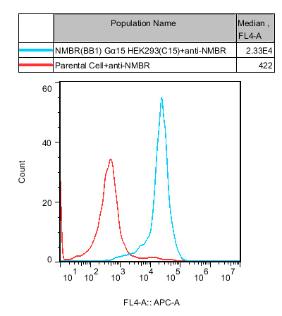 NMBR(BB1) Gα15 HEK293 细胞药靶模型很好的模拟了体内 NMBR(BB1)&Gα15 的信号转导过程,原理见下图所示。![]() Figure 1. NMBR(BB1) Gα15 HEK293 细胞模型原理图 |