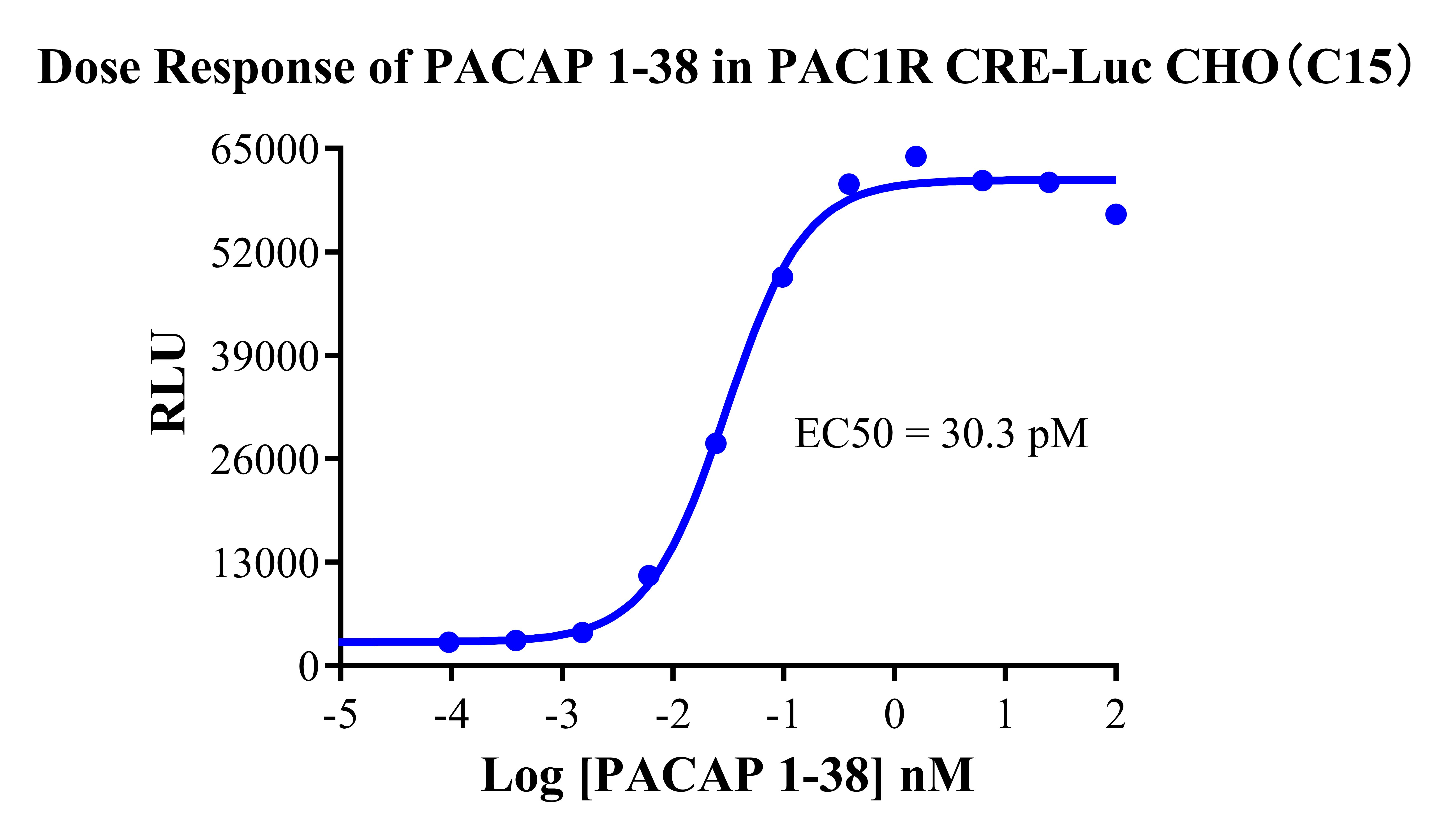 PAC1R CRE-Luc CHO 报告基因药靶模型很好的模拟了体内 PAC1R 的信号转导过程, 原理见下图所示。![]() Figure 1. PAC1R CRE-Luc CHO 细胞模型原理图 |