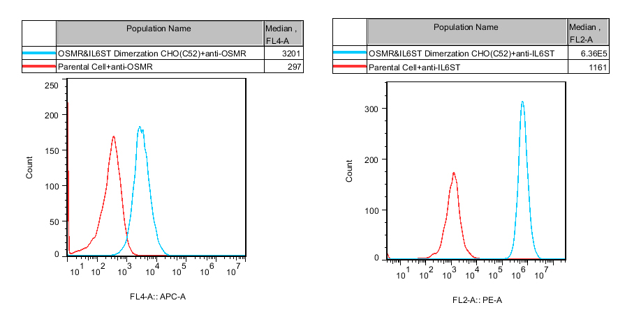 ![]() Figure 4. Inhibition of Recombinant Human OSM induced OSMR&IL6ST Dimerization by OSMR Blocking Ab in OSMR&IL6ST Dimerization CHO (C52). |