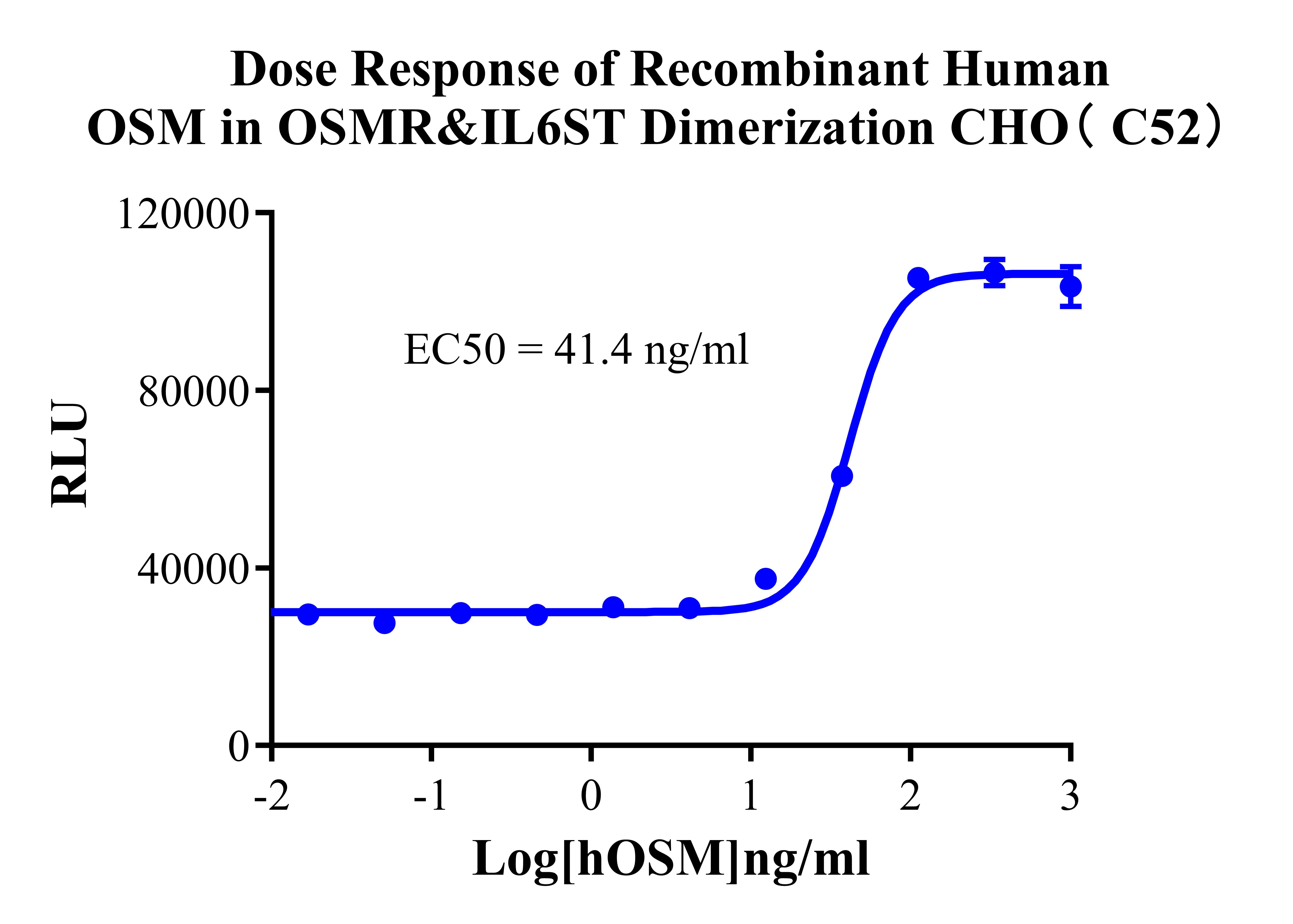 ![]() Figure 2. Recombinant OSMR&IL6ST Dimerization CHO stably expressing OSMR&IL6ST. ![]() Figure 3. Dose Response of Recombinant Human OSM in OSMR&IL6ST Dimerization CHO( C52).