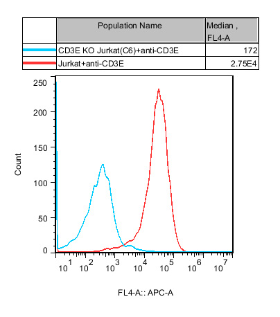 | CD3E KO Jurkat 细胞,在 Jurkat 细胞的基础上,稳定表达人 CD3E。 | |