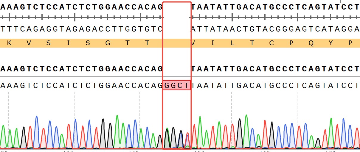 ![]() Figure 1. CD3E KO Jurkat 细胞测序验证结果[CD3E(NM_000733.4):c.133_134insGGCT/CD3E:p.V45Gfs*13] ![]() Figure 2. Recombinant CD3E KO Jurkat stably expressing CD3E.