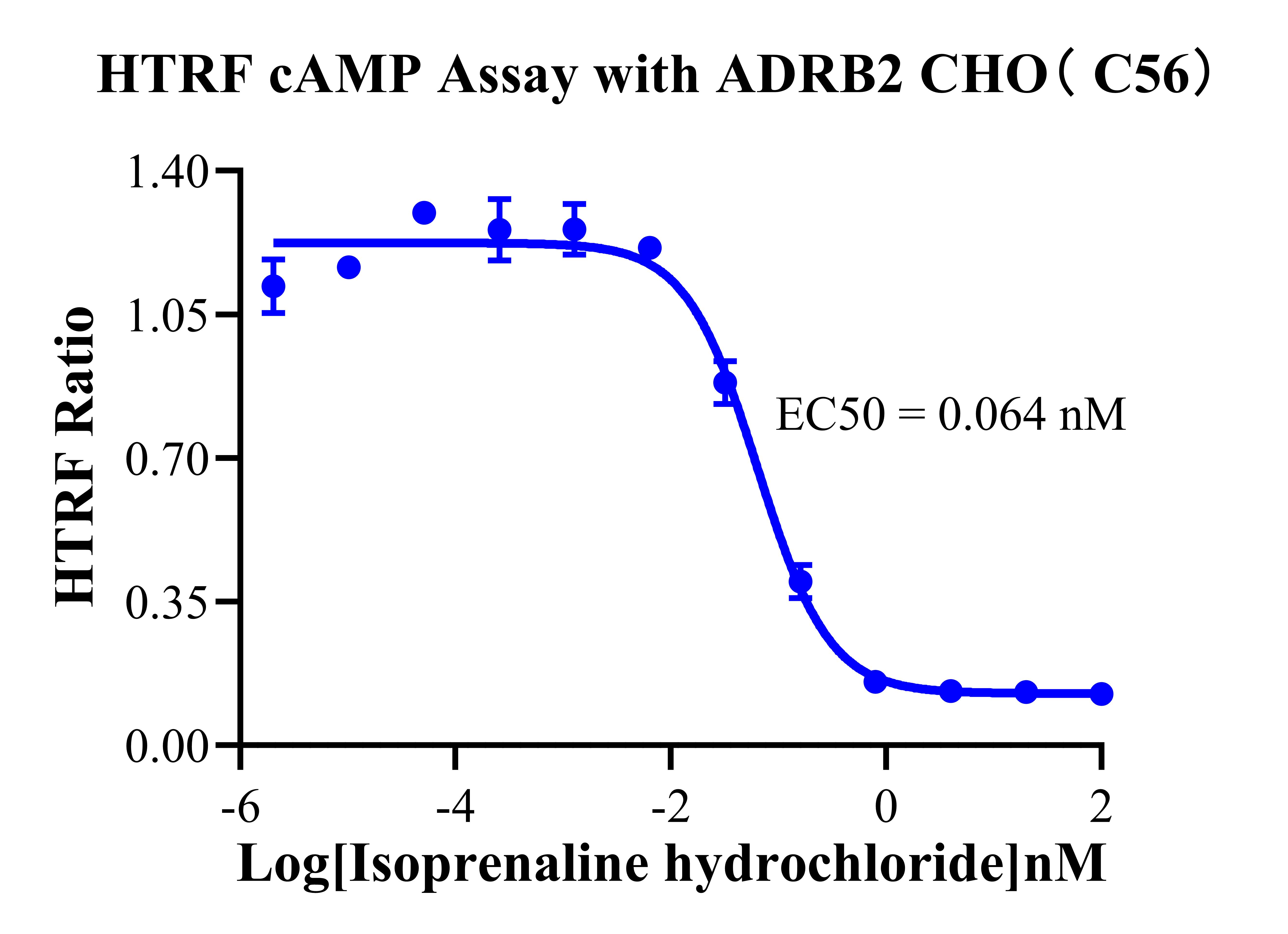 V. Representative Data![]() Figure 1. Recombinant ADRB2 CHO stably expressing ADRB2. ![]() Figure 2. HTRF cAMP Assay with ADRB2 CHO( C56). |