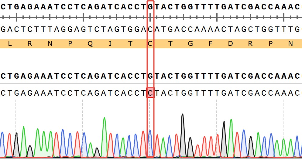 WRN[C727S](Homozygous,AF%:100) Isogenic RKO药靶细胞,通过基因 编辑的方式将WRN的727位氨基酸半胱氨酸(C)突变为丝氨酸(S)。![]() Figure 1. WRN[C727S](Homozygous,AF%:100) Isogenic RKO原理示意图 |