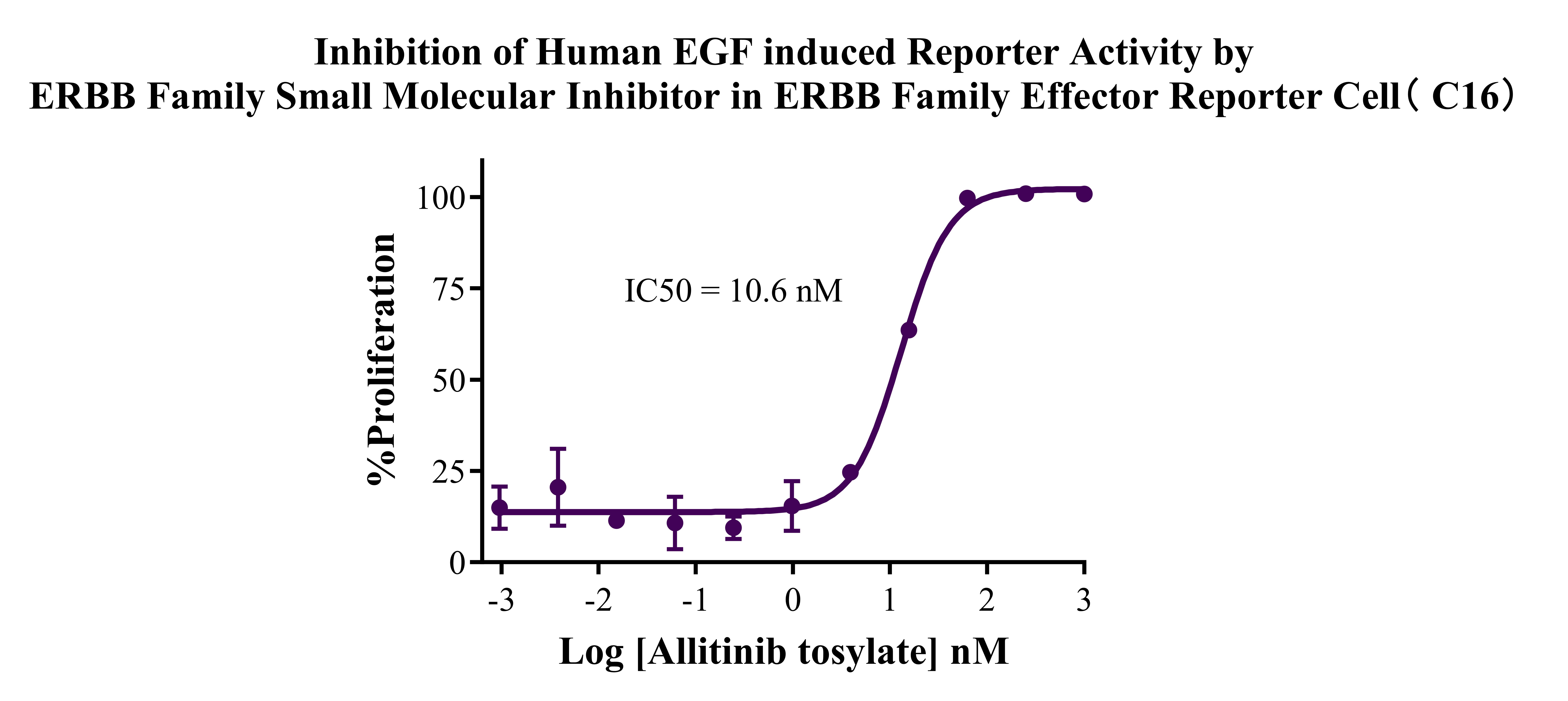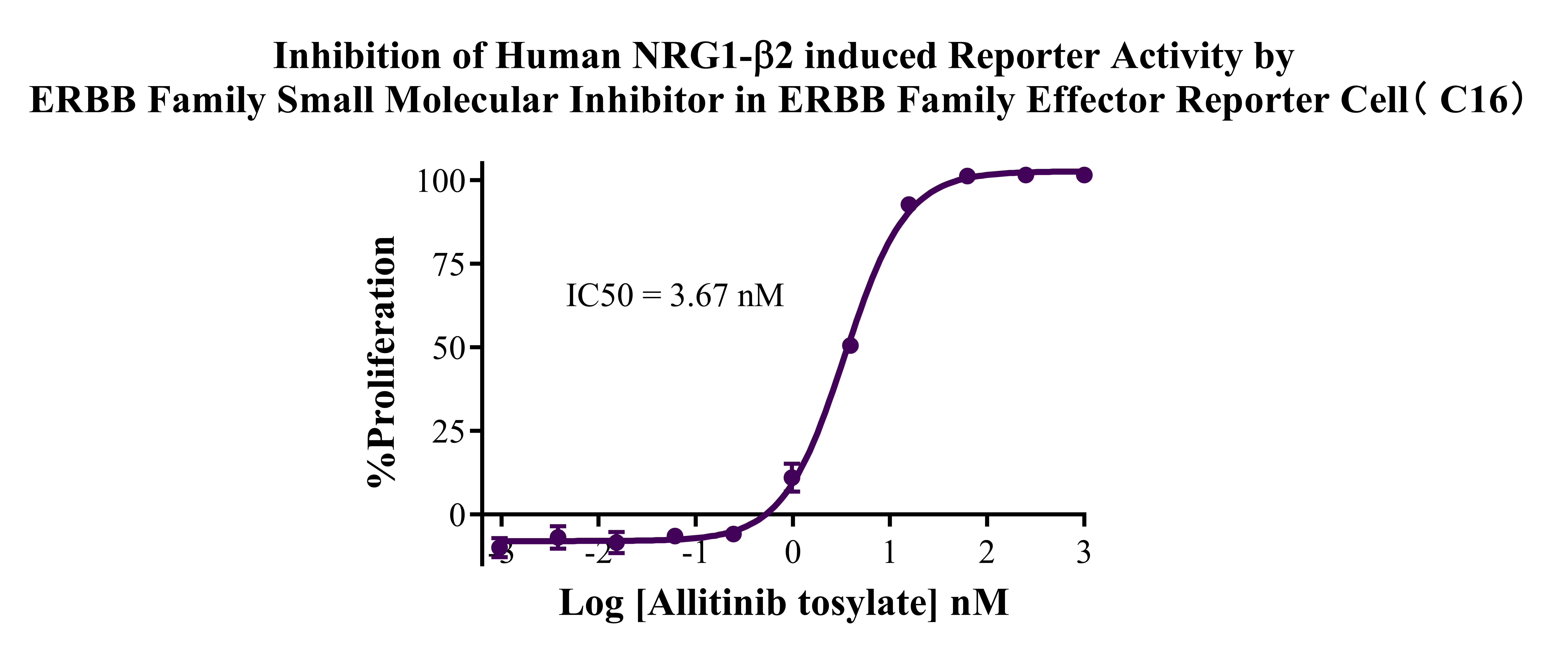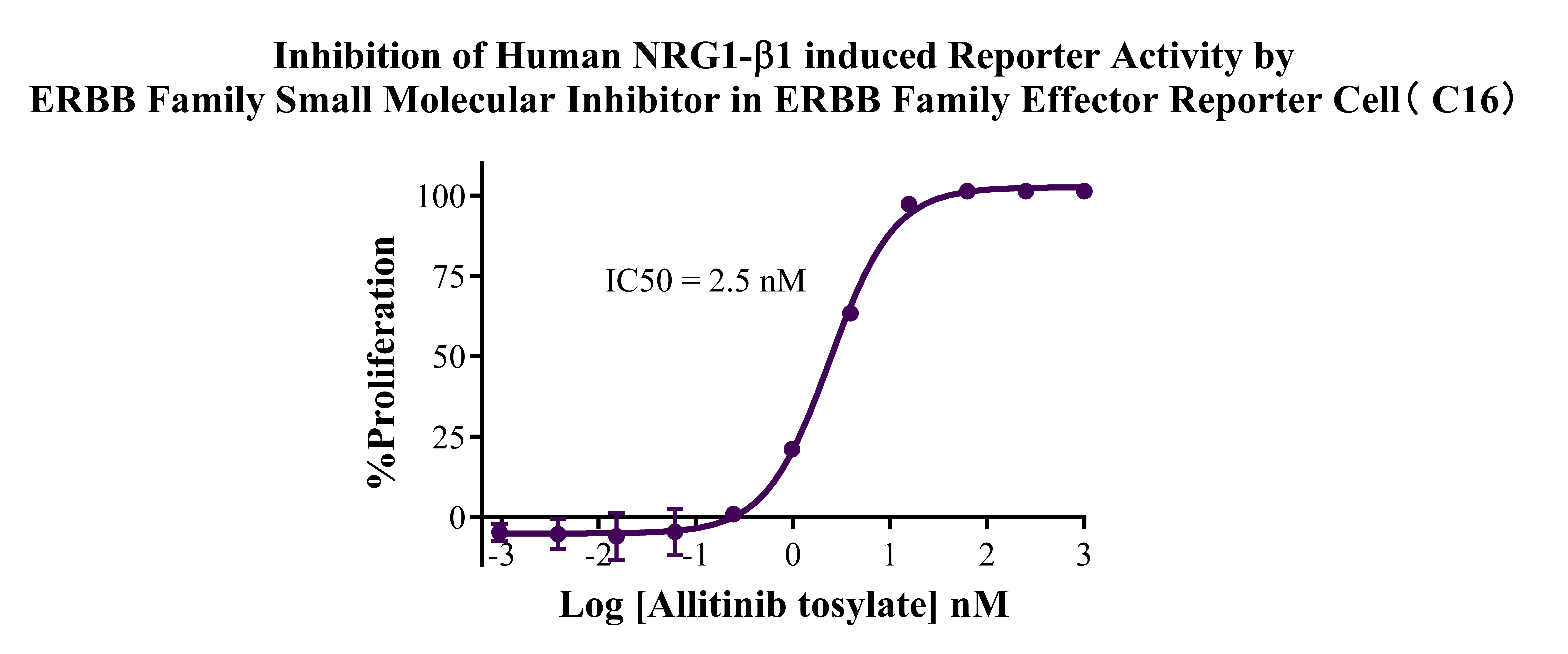 ![]() Figure 2. WB of ERBB Family Effector Reporter Cell. ![]() Figure 3. Recombinant ERBB Family Effector Reporter Cell stably expressing EGFR & ERBB2 & ERBB3. ![]() Figure 4. Dose Response of Ligands in ERBB Family Effector Reporter Cell (C16). ![]() Figure 5. Inhibition of Human EGF induced Reporter Activity by ERBB Family Blocking Abs in ERBB Family Effector Reporter Cell(C16). ![]() Figure 6. Inhibition of Human EGF induced Reporter Activity by ERBB Family Small Molecular Inhibitor in ERBB Family Effector Reporter Cell( C16). ![]() Figure 7. Inhibition of Human NRG1-β1 induced Reporter Activity by ERBB Family Blocking Abs in ERBB Family Effector Reporter Cell(C16). ![]() Figure 8. Inhibition of Human NRG1-β1 induced Reporter Activity by ERBB Family Small Molecular Inhibitor in ERBB Family Effector Reporter Cell (C16). ![]() Figure 9. Inhibition of Human NRG1-β2 induced Reporter Activity by ERBB Family Blocking Abs in ERBB Family Effector Reporter Cell(C16). ![]() Figure 10. Inhibition of Human NRG1-β2 induced Reporter Activity by ERBB Family Small Molecular Inhibitor in ERBB Family Effector Reporter Cell (C16). |