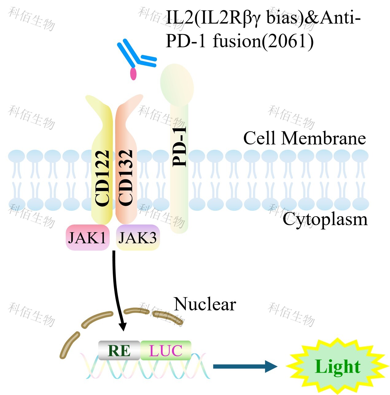 PD-1&IL2/IL15(hCD122/hCD132) Effector Reporter Cell 报告基因药靶模型很好的模拟 了体内 PD-1&IL2 受体二亚基的信号转导过程,原理见下图所示。![]() Figure 1. PD-1&IL2/IL15(hCD122/hCD132) Effector Reporter Cell 细胞模型原理图 |
