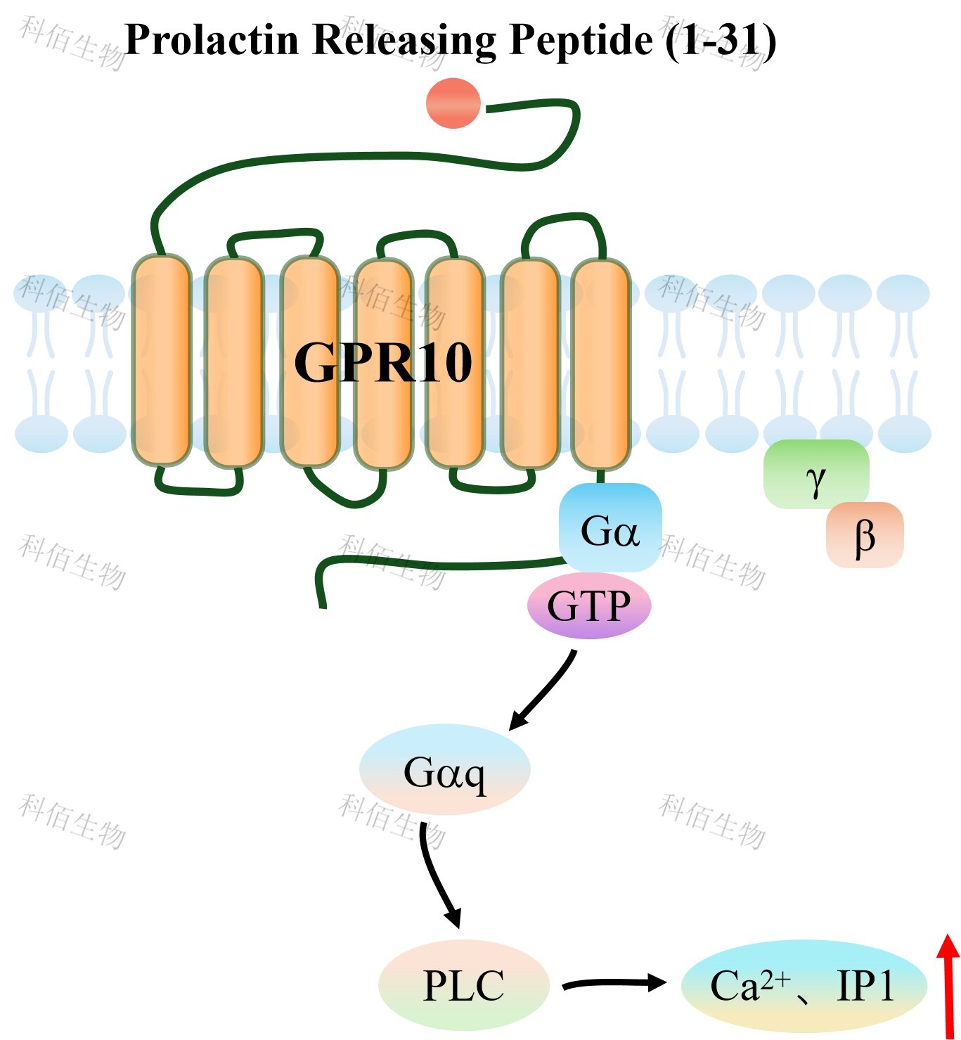 | GPR10(催乳素释放肽受体,PrRPR),是一种典型的 A 类 GPCR,主要分布于中枢 神经系统,特别是下丘脑、丘脑和脑干等调控能量平衡、痛觉和心血管功能的脑区。 GPR10 的内源性配体是催乳素释放肽(PrRP),这是一种神经肽,最初因其促进催乳素释 放的能力而得名,但后续研究发现其核心功能在于调节摄食和能量代谢。PrRP 存在两种亚 型:PrRP31 和 PrRP20,它们以高亲和力结合并激活 GPR10,启动下游信号级联反应。 当配体 PrRP 与 GPR10 结合后,会诱导受体构象变化,进而激活与之偶联的 G 蛋白。 GPR10 主要与 Gq/11 家族 G 蛋白偶联,激活的 Gq 蛋白进一步激活 PLC,催化细胞膜上的 磷脂酰肌醇二磷酸(PIP2)水解生成三磷酸肌醇(IP3)和二酰甘油(DAG)。IP3 与内质 网上的 IP3 受体结合,促使细胞内钙库释放 Ca 2+,导致胞内钙离子浓度迅速升高;同时, DAG 激活蛋白激酶 C(PKC)。此外,研究也表明 GPR10 在某些细胞背景下能与 Gi/o 蛋 白偶联,抑制腺苷酸环化酶活性,降低胞内 cAMP 水平。这些信号通路的激活最终会调控 神经元兴奋性、基因表达及神经肽释放,从而介导 GPR10 在抑制食欲、调节能量代谢及削 弱阿片镇痛效应等方面的生理功能。该受体的信号主要通过 G 蛋白偶联受体激酶(GRK) 磷酸化和随后的β-arrestin 结合来实现脱敏和内吞。 |