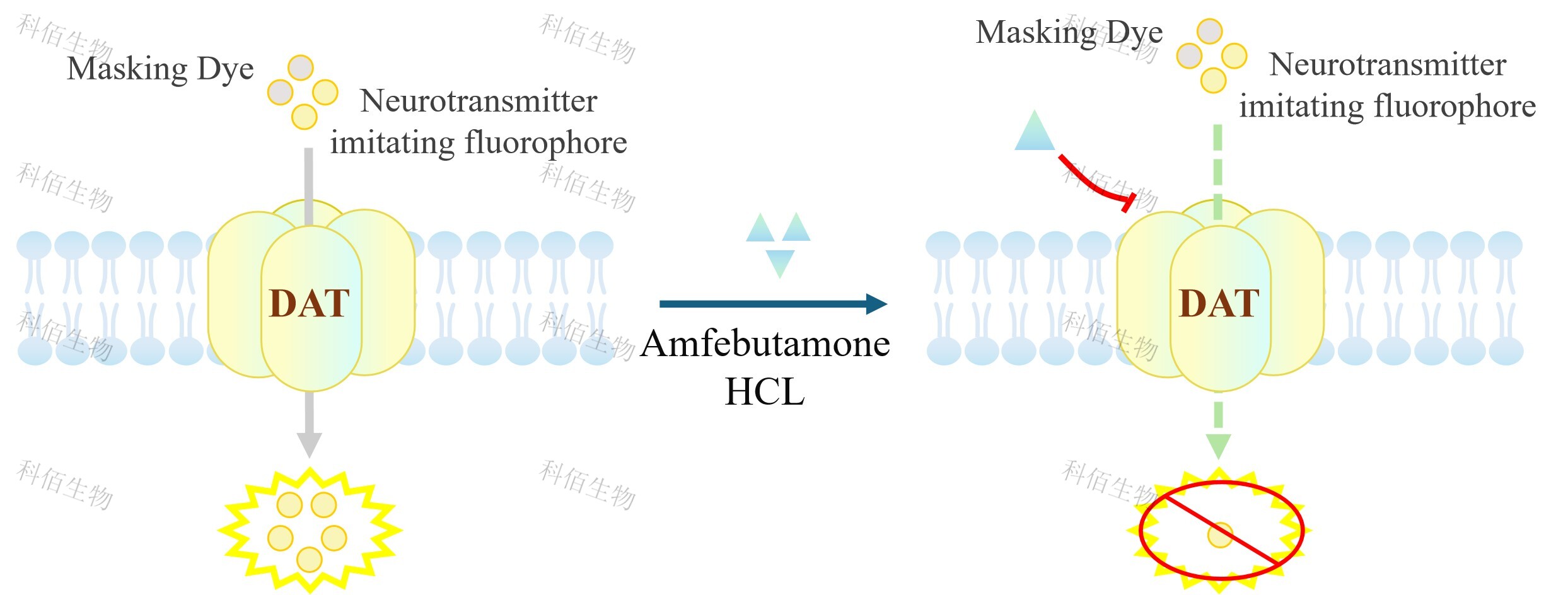 DAT(SLC6A3) CHO 药靶模型很好的模拟了体内转运蛋白调节神经元信号传导,原理见下图所示。