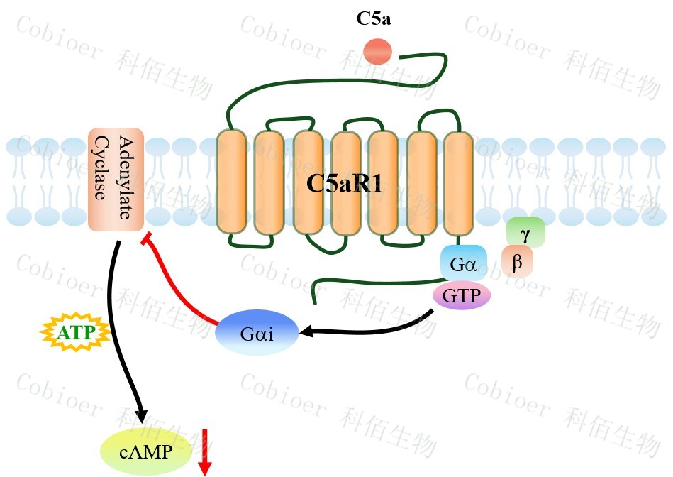 | 补体 C5a 是由补体系统经 C5 转化酶裂解 C5 产生的强效炎症介质,作为核心过敏毒素 通过结合受体 C5aR1/C5aR2 驱动中性粒细胞趋化、氧化爆发及炎性因子(IL-6/TNF-α)释 放,在脓毒症中诱发“细胞因子风暴”,在自身免疫病(如类风湿关节炎)中促进组织侵 蚀,在肿瘤微环境募集髓系抑制细胞(MDSC)介导免疫逃逸。 C5aR1(CD88)是补体过敏毒素 C5a 的高亲和力 GPCR,主要表达于髓系细胞(中性 粒细胞、单核细胞、肥大细胞),通过激活 Gi/Gq 蛋白-PI3K/MAPK 通路驱动炎症级联反应。 |