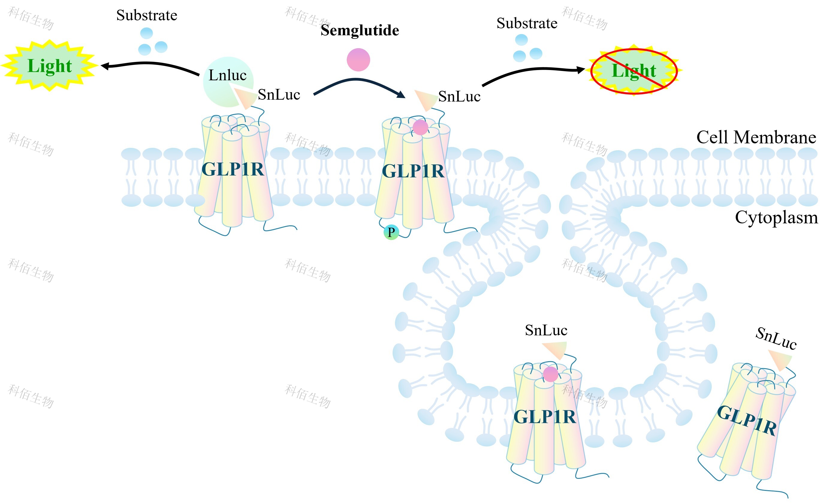GLP1R Total Internalization HEK293 药靶模型很好的模拟了体内 GLP1R 的信号转导过程,原理见下图所示。