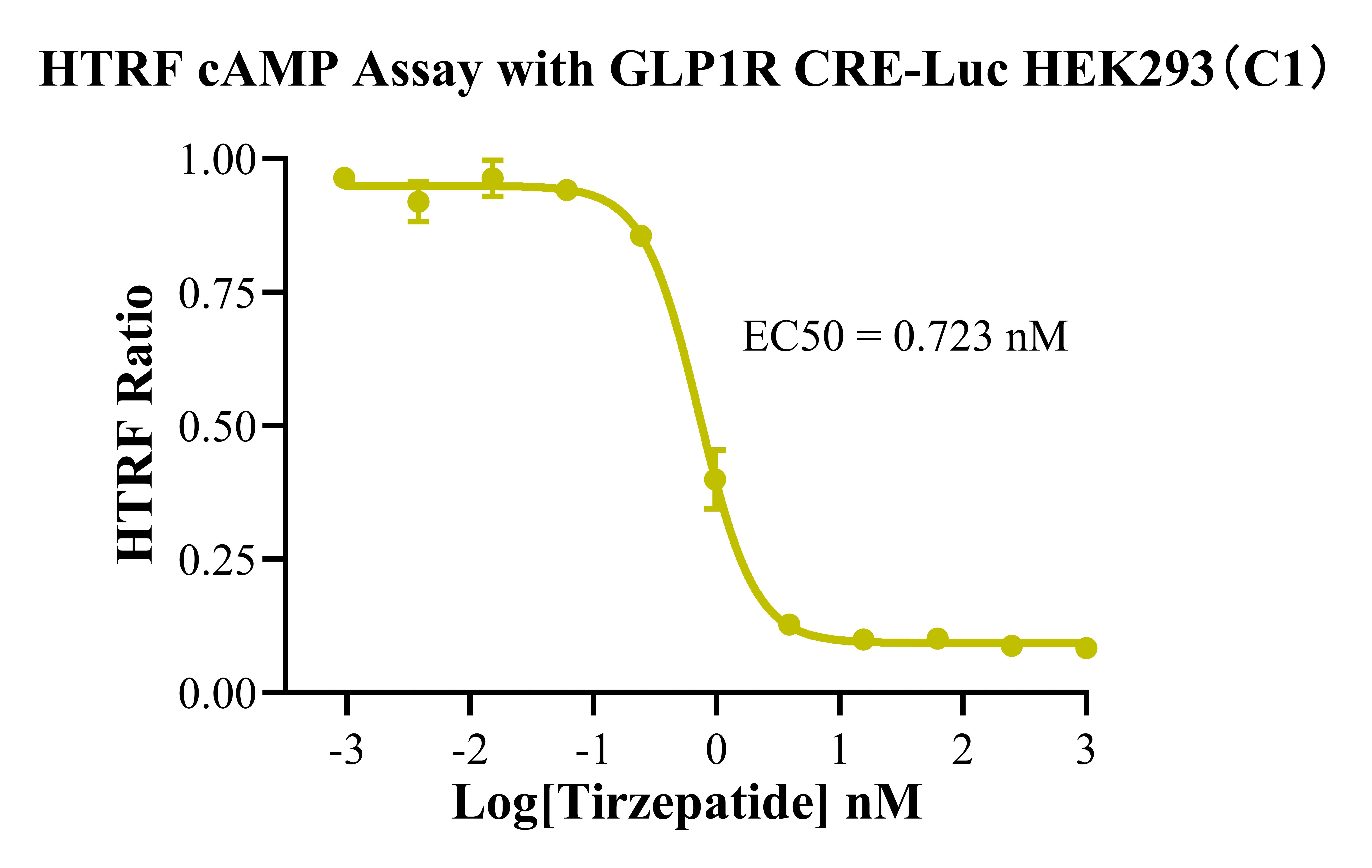 GLP1R CRE-Luc HEK293 报告基因药靶模型很好的模拟了体内 GLP1R 的信号转导过程,原理见下图所示。
