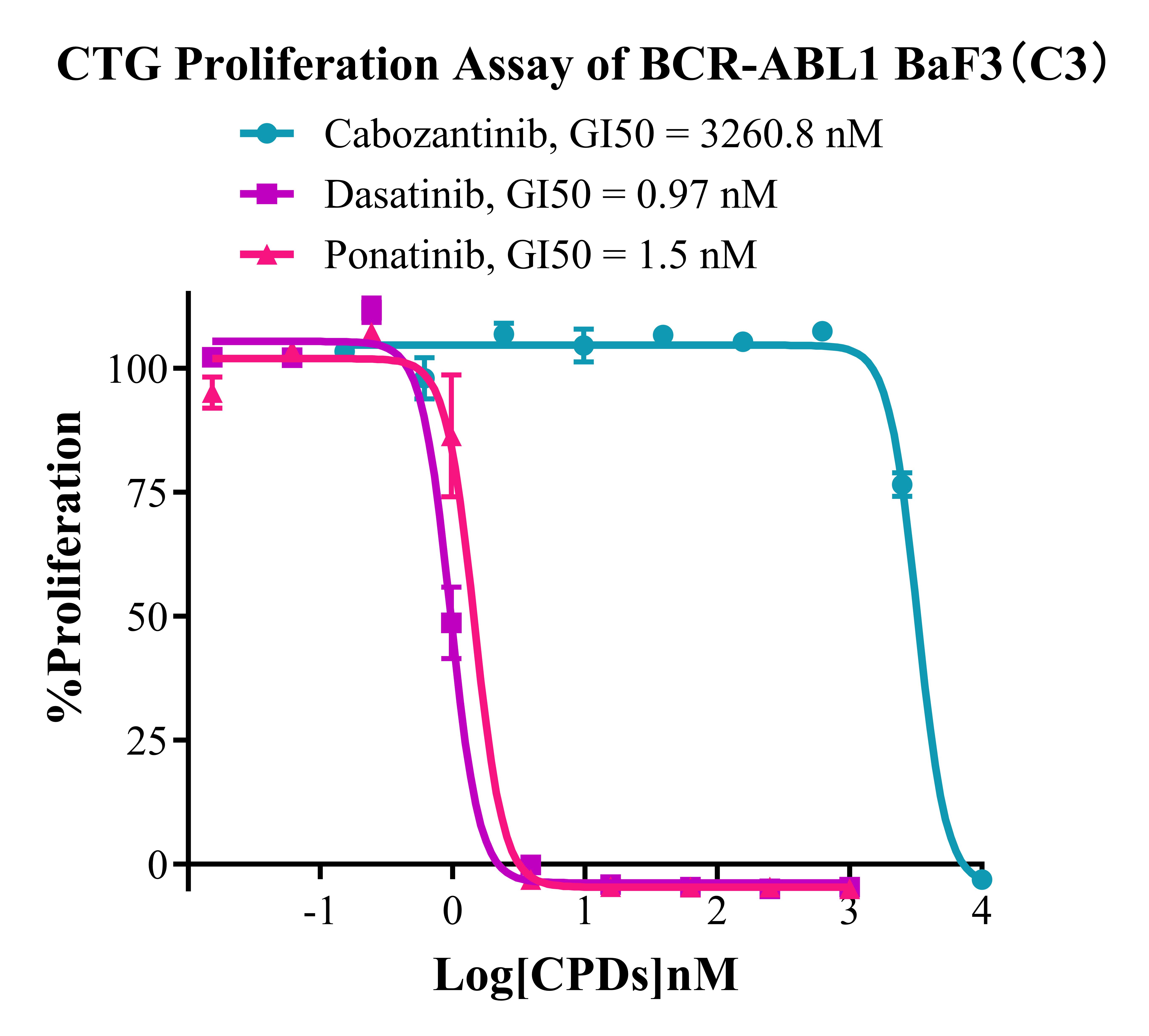 Figure 4. CTG Proliferation Assay of BCR-ABL1 BaF3 (C3). |