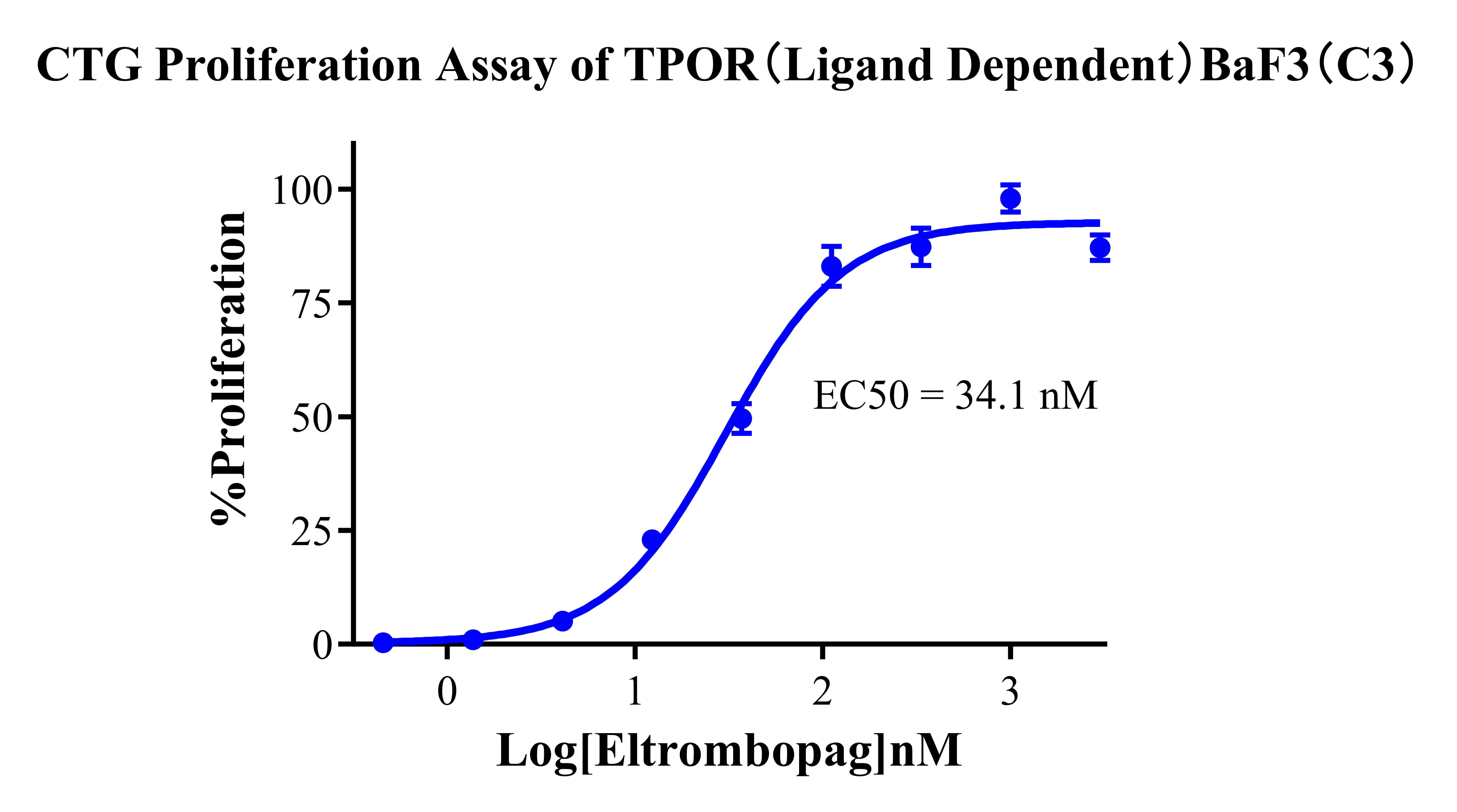Figure 3. CTG Proliferation Assay of TPOR(Ligand Dependent) BaF3(C3). |