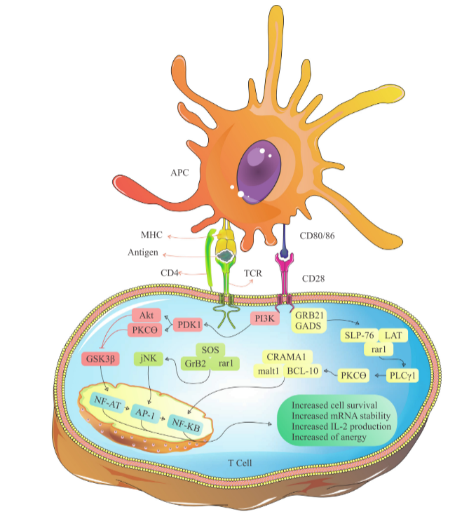 CTLA-4是由CTLA-4基因编码的一种重要的跨膜蛋白。该蛋白属于免疫球蛋白超家族(Immunoglobulin Superfamily, IgSF)成员,其结构包括一个胞外免疫球蛋白可变区(IgV)结构域、一个跨膜区以及一个胞内结构域。CTLA4与T细胞共刺激蛋白CD28同源,并且两种分子在抗原呈递细胞上分别与CD80和CD86(也称为B7-1和B7-2)结合。CTLA-4以比CD28更大的亲和力和亲合力结合CD80和CD86,因此使其能够胜过CD28的配体。CTLA4向T细胞传递抑制信号,而CD28传递刺激信号。CTLA4也在调节性T细胞(Tregs)中发现并有助于它们的抑制功能。通过T细胞受体和CD28的T细胞活化导致CTLA-4的表达增加。
