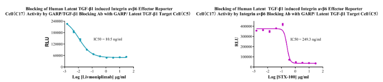 为助力GARP/LTGF-β 靶点药物研发,南京科佰开发了GARP/Latent TGF-β1 Target Cell、GARP/Latent TGF-β1 CHO细胞筛选模型,产品验证结果如下: