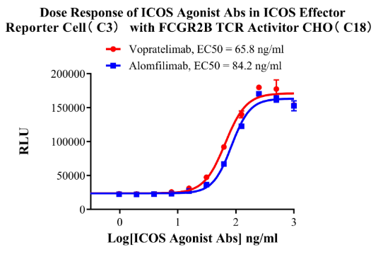 为了助力ICOS靶点药物的研发,科佰生物开发了一系列关于ICOS-ICOSL的细胞模型,用于候选药物早期机理研究。部分结果如下: